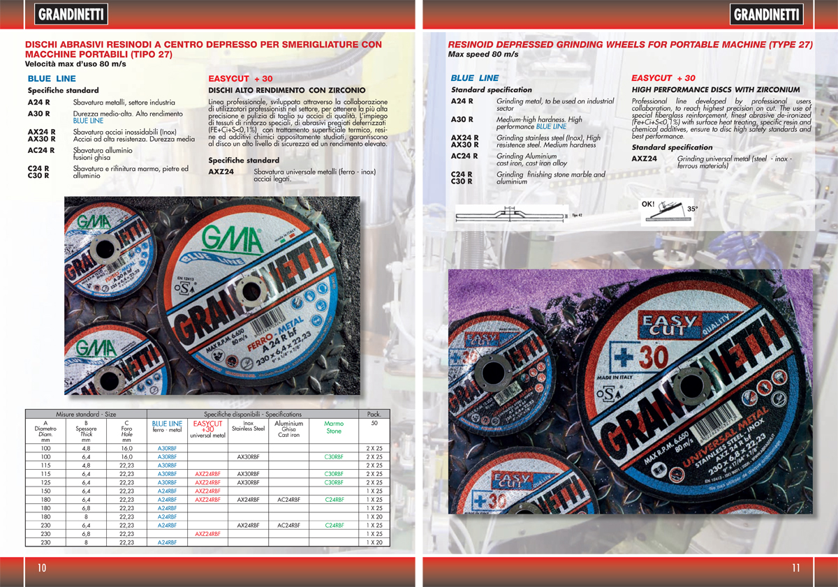 Dischi abrasivi resinodi a centro depresso per smerigliature con macchine portabili